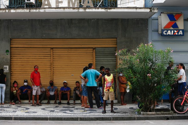 Fila e aglomeração de pessoas em frente à agência bancária responsável pelo pagamento de ajuda de emergência a cidadãos brasileiros durante a pandemia, na cidade de Pernambuco | © Paulo Paiva / AGIF / AP